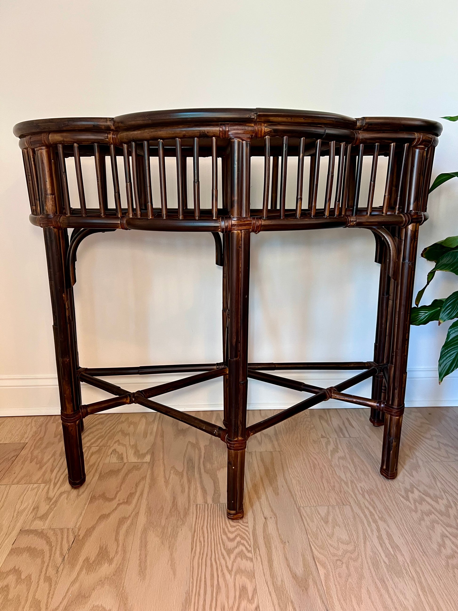 This demilune bamboo table offers a timeless and durable addition to any space. Perfect for adding a hint of warmth and elegance to your home decor. 40w x 19d x 34h