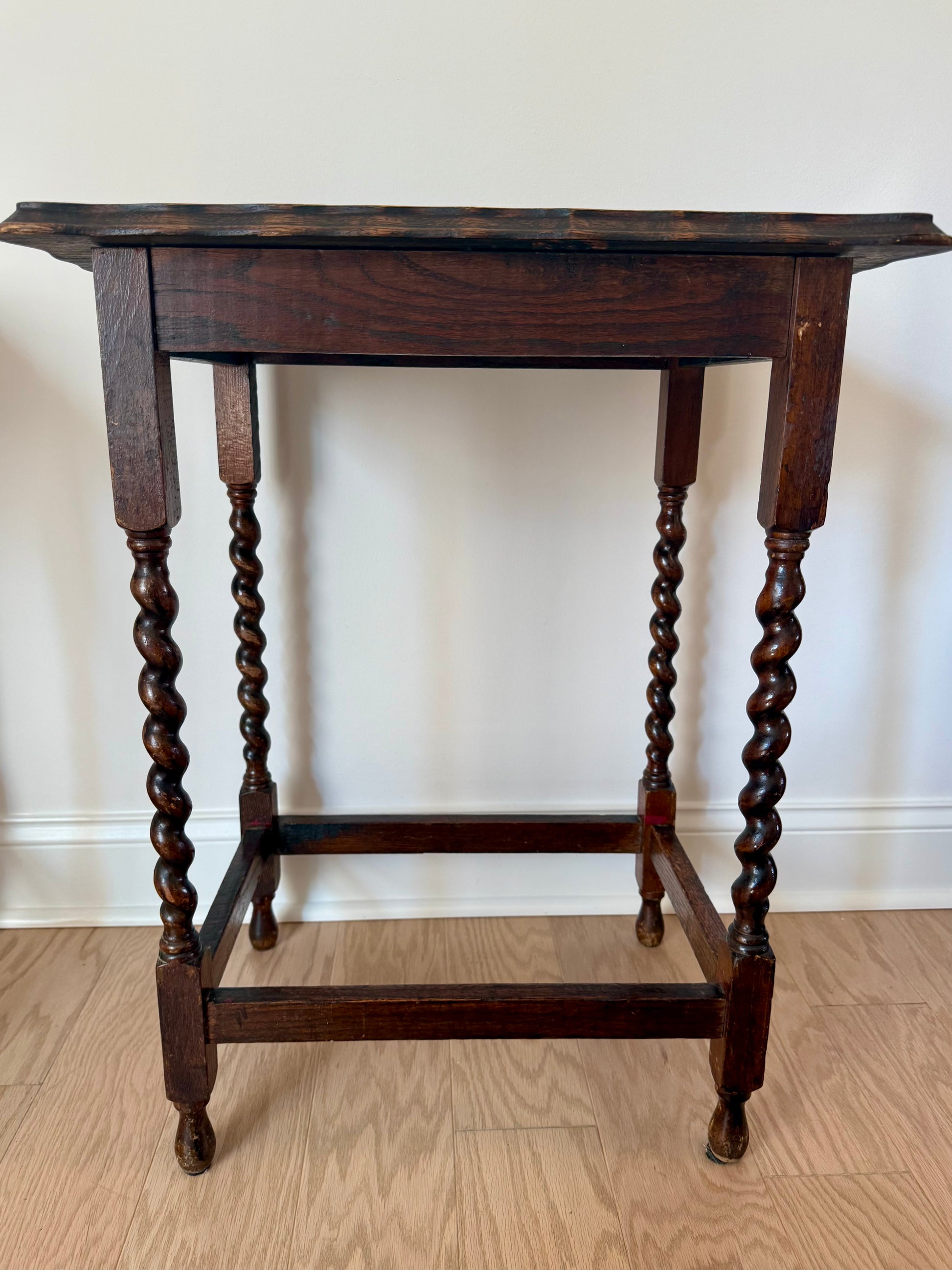 This barley twist table features intricately twisted legs and a sturdy surface that provides the perfect spot for your favorite decor or a cup of coffee. 28Hx16.5Wx23D