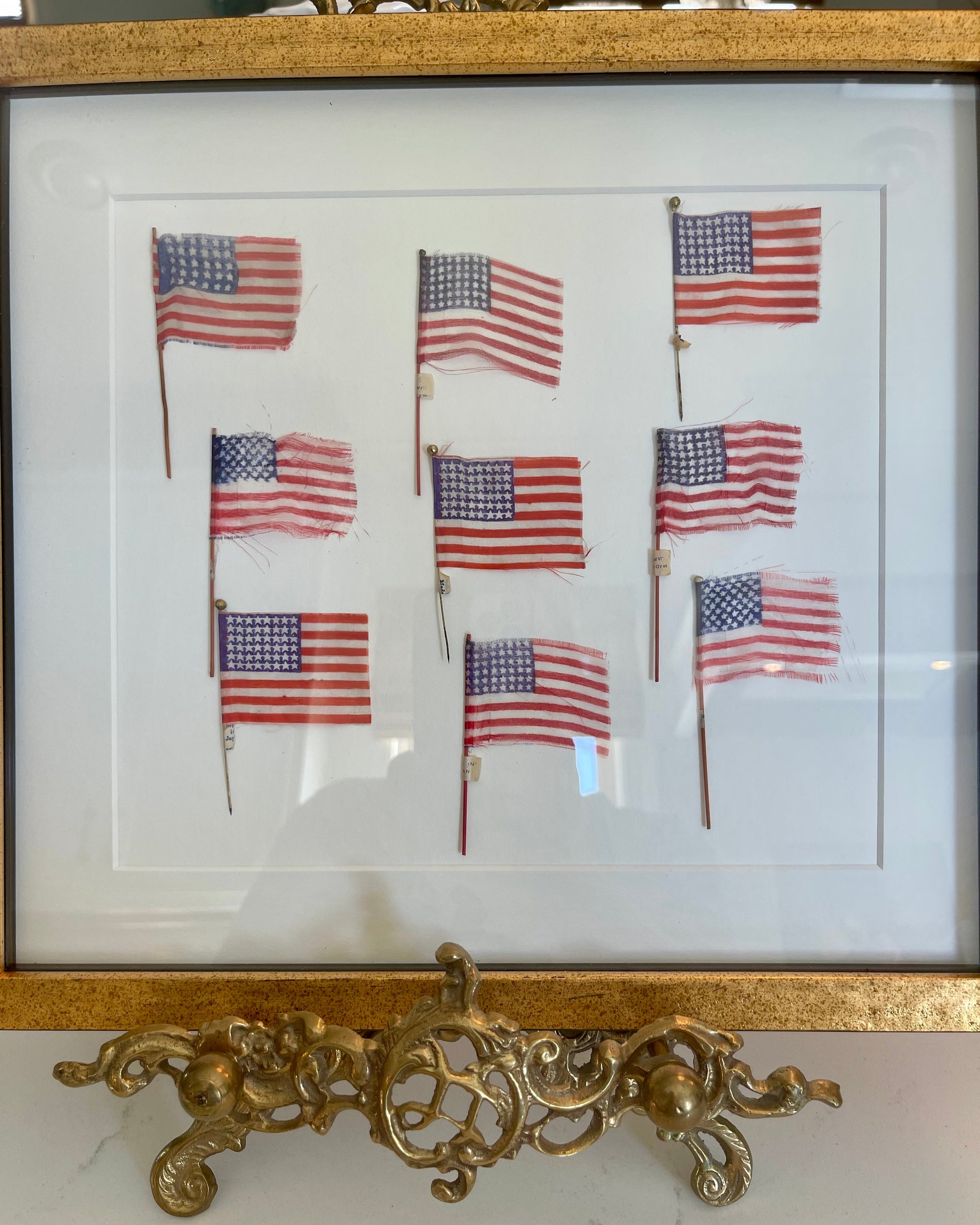 Celebrate history with our custom framed vintage American flags, expertly preserved and beautifully displayed to enhance any space. Perfect for collectors or patriotic decor, these framed flags offer a unique way to honor heritage and showcase pride. 14.5Wx13.25H