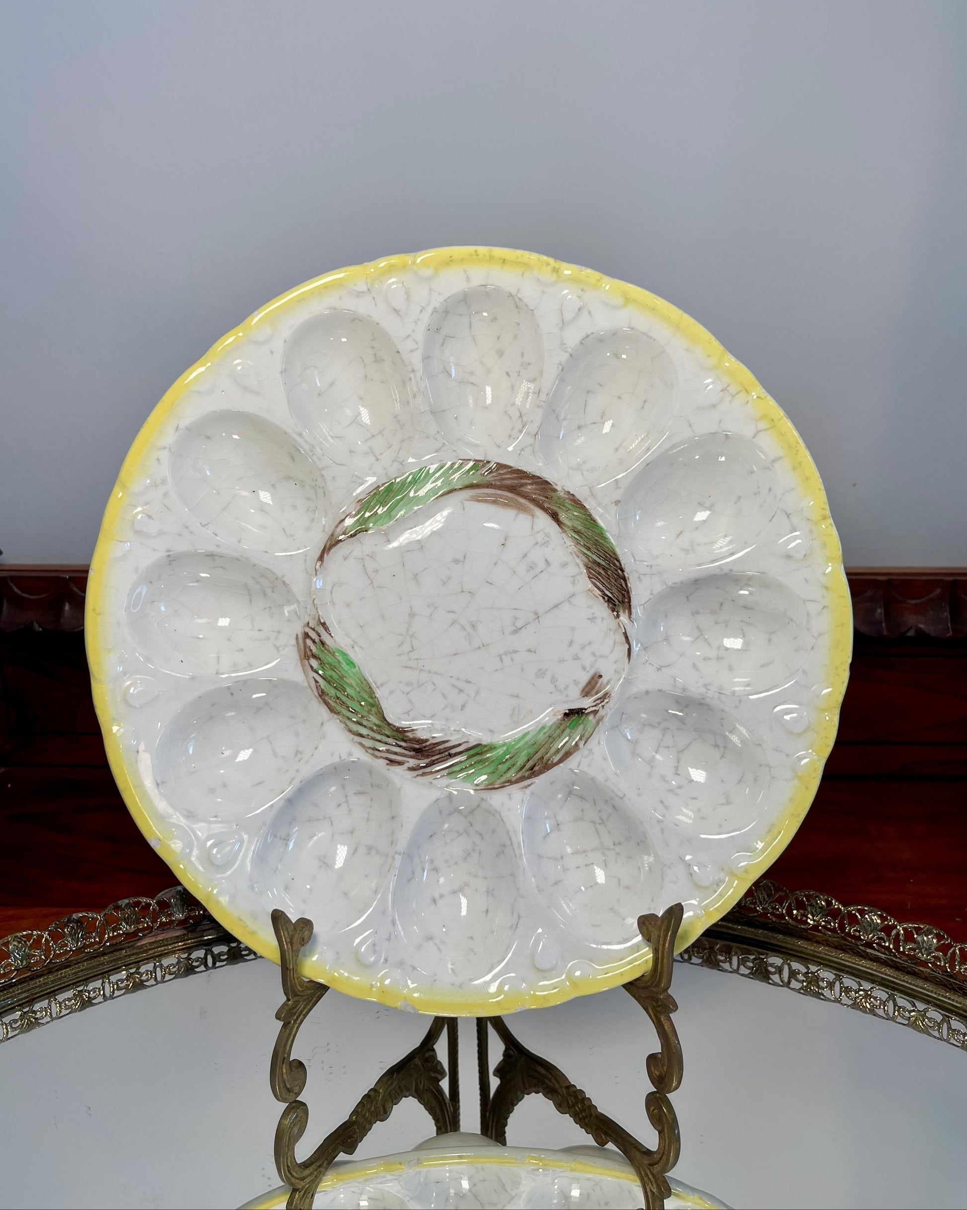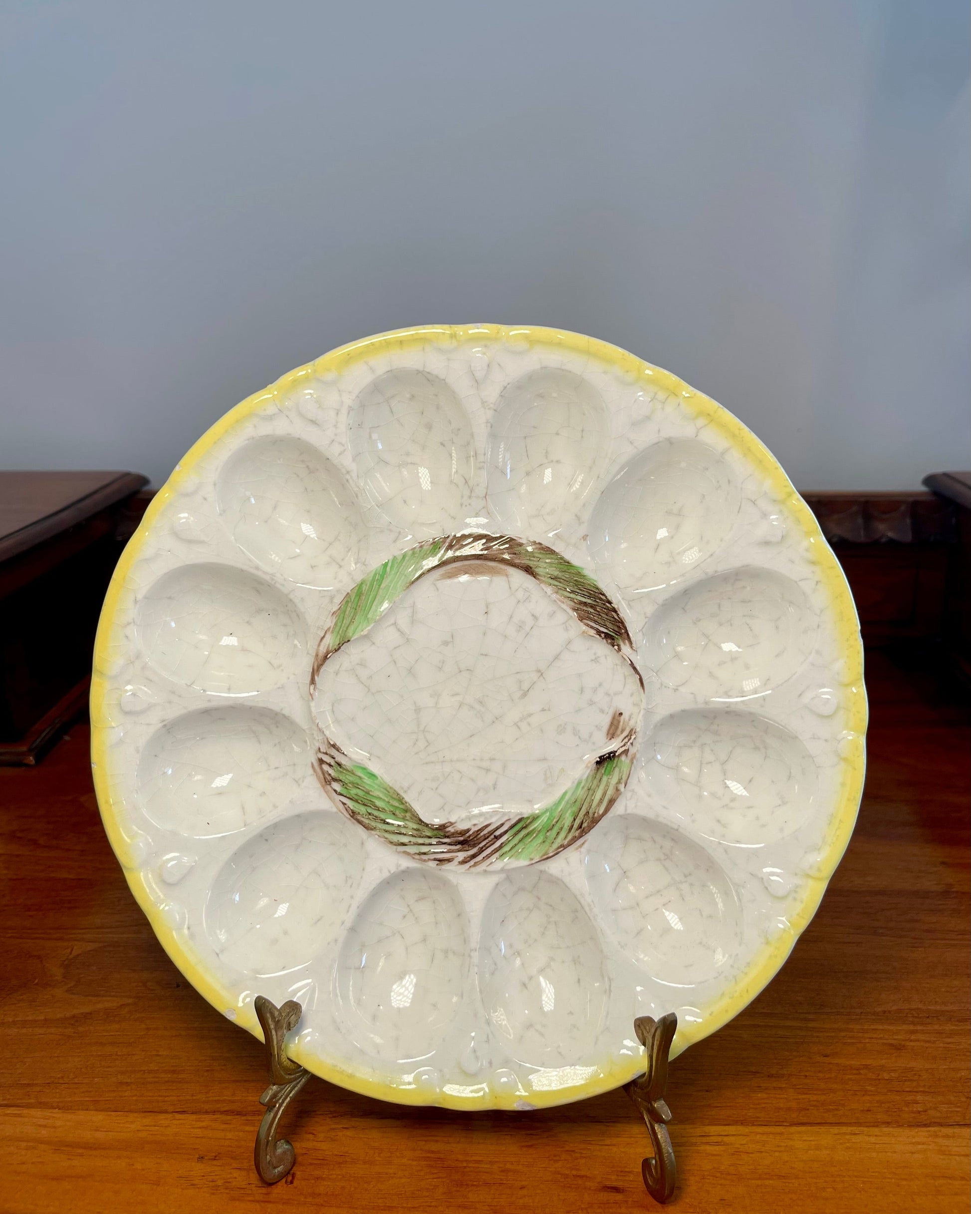 This delicate painted deviled egg plate would be just the right touch for your plate wall! 9.5W