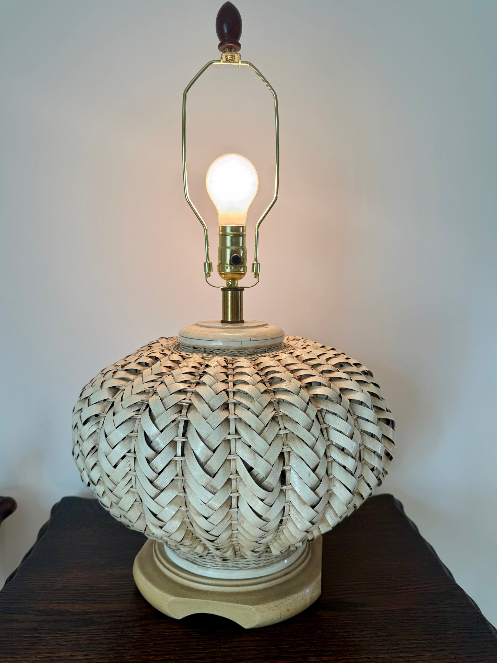 This vintage lamp’s handwoven rattan adds a warm texture touch to any room! Recently rewired. 18Hx15W