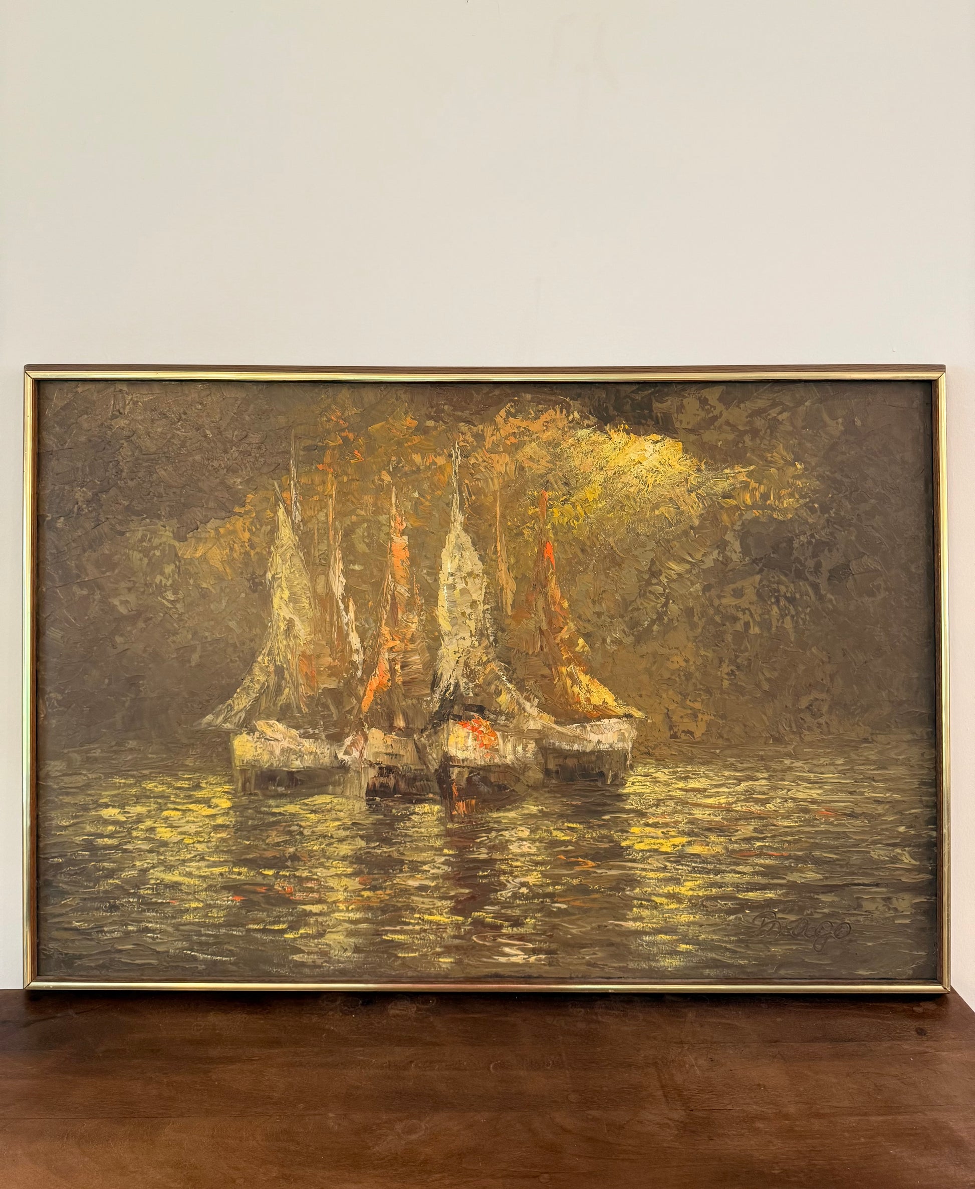 This framed vintage sailboats painting brings a sense of adventure and tranquility to any space. The artwork invites you to sail back in time and enjoy the serene beauty of vintage maritime life. The detail and colors are truly breathtaking! 37Wx25H